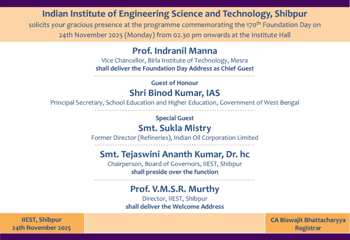 Celebration of Institute's 170th Foundation Day on Monday 24th November, 2025 at Institute Hall at 02:30 PM